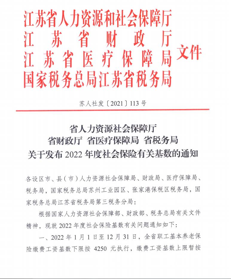 江苏省社会保险最低缴费基数将调整为4250元